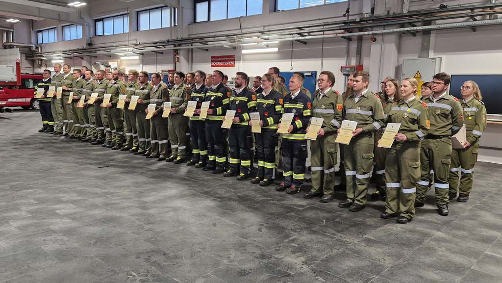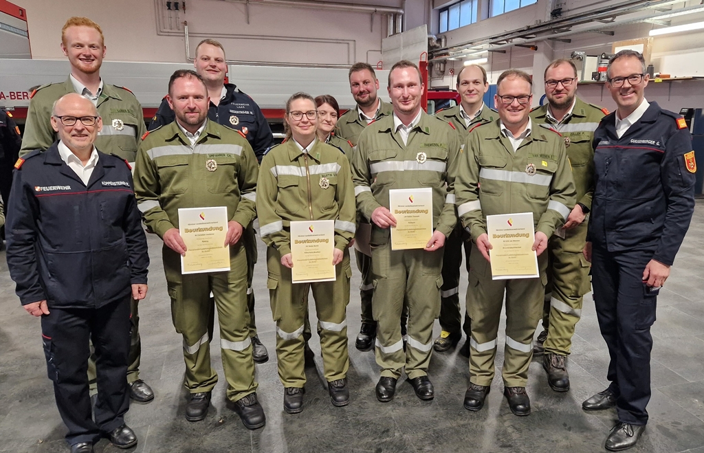 Den Auftakt dieses äußerst aufregenden Tages bildete die feierliche Eröffnung mit dem Hissen der „FLA in Gold-Fahne“. Dann ging es spannend weiter mit den schriftlich zu absolvierenden Stationen 2 und 6. Bei der Station 2 hieß es „Berechnen, Ermitteln, Entscheiden“, die Station 6 umfasst das Thema „Führungsverfahren“ in Form einer schriftliche Planübung. Anschließend mussten sich die Bewerber:innen im Stationsbetrieb folgenden Herausforderungen stellen: Station 1 – Ausbildung in der Feuerwehr, Übungsgestaltung, Station 3 – Brandschutzplan, Station 4 – Befehlsgebung, Planübungen, Station 5 – Fragen aus dem Feuerwehrwesen und Station 7 – Verhalten vor einer Gruppe. Am Ende der anspruchsvollen Leistungsprüfung konnten die erfolgreichen Feuerwehrmitglieder mit Stolz das Leistungsabzeichen in Gold entgegennehmen.