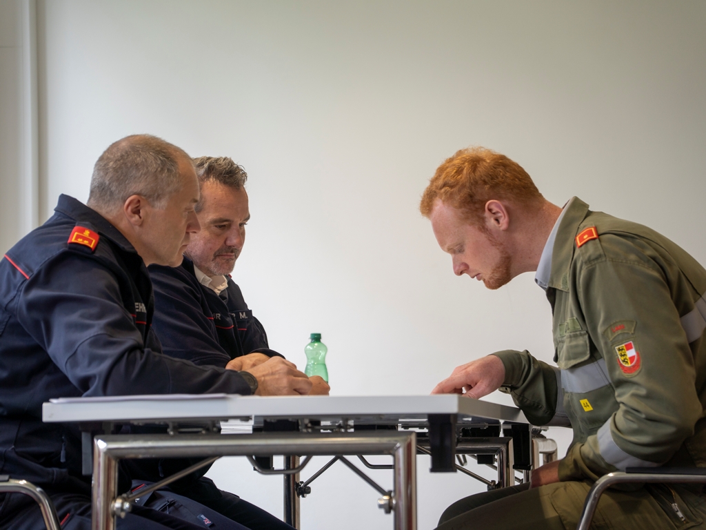 Diese Leistungsprüfung stellt höchste Anforderungen an Wissen und Können und umfasst insgesamt sieben Stationen, die grundlegende Aufgaben eines Gruppenkommandanten verankern. Jede der sieben Stationen muss erfolgreich absolviert werden.