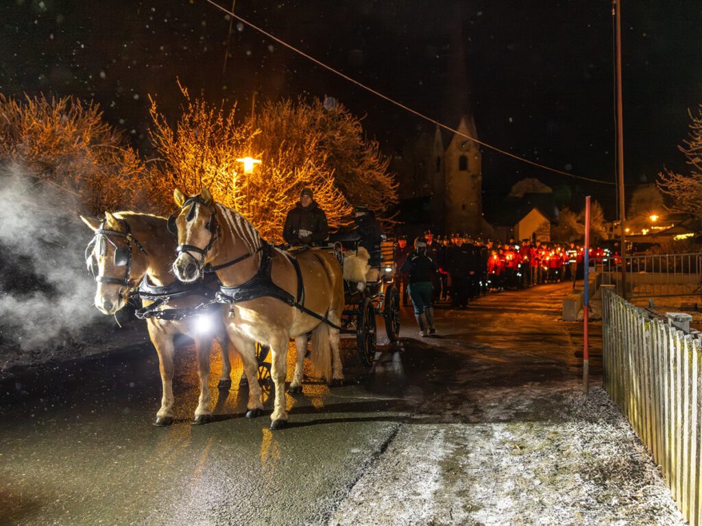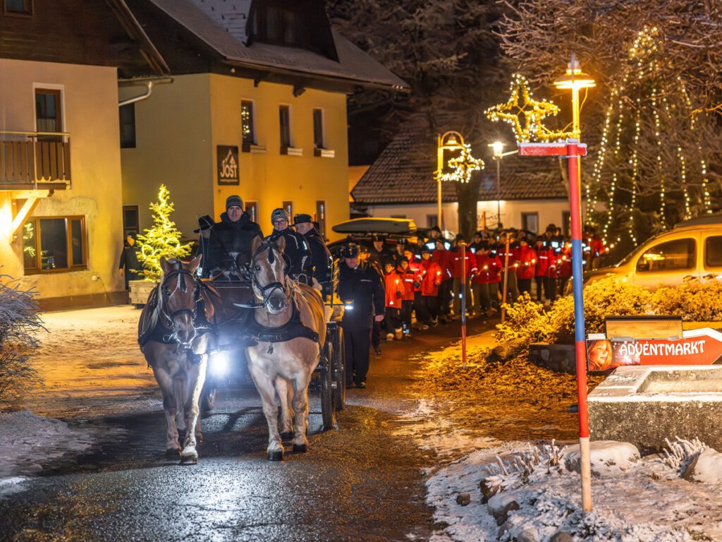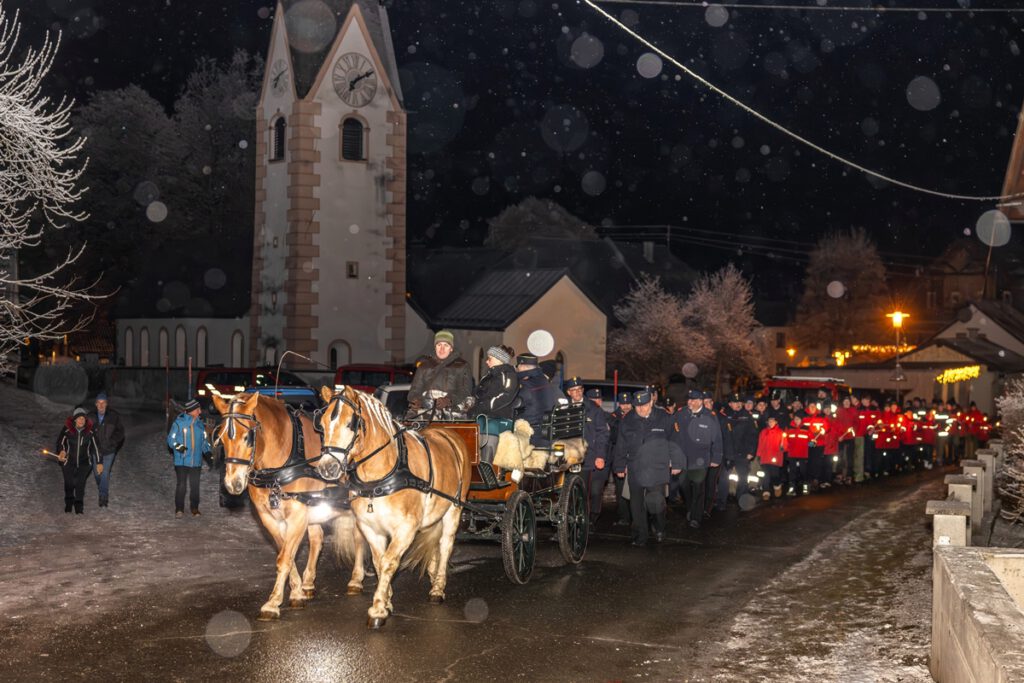 Mit einem stimmungsvollen Fackelzug kam das Friedenslicht auf einer Pferdekutsche, gefolgt von Feuerwehrfunktionären und der Feuerwehrjugend des Bezirkes Hermagor, am Adventmarktgelände in Tröpolach an. In weihnachtlichem Ambiente begrüßte der Bezirksjugendbeauftragte Franz Pfaffenberger alle Anwesenden. Bezirksfeuerwehrkurat Andreas Tonka sprach besinnliche Worte zur Weihnachtszeit. Nach den Grußworten von Bürgermeister Leopold Astner und Bezirksfeuerwehrkommandant Herbert Zimmermann konnten die Feuerwehrjugendmitglieder das Friedenslicht aus Bethlehem entgegennehmen, um es im Bezirk Hermagor zu verteilen. Organisiert wurde die Feier von der Freiwilligen Feuerwehr Tröpolach unter Kdt. Gernot Steiner mit Unterstützung der Adventmarktveranstalter. Für den würdigen musikalischen Rahmen sorgte ein Quartett der Trachtenkapelle Wulfenia Tröpolach.