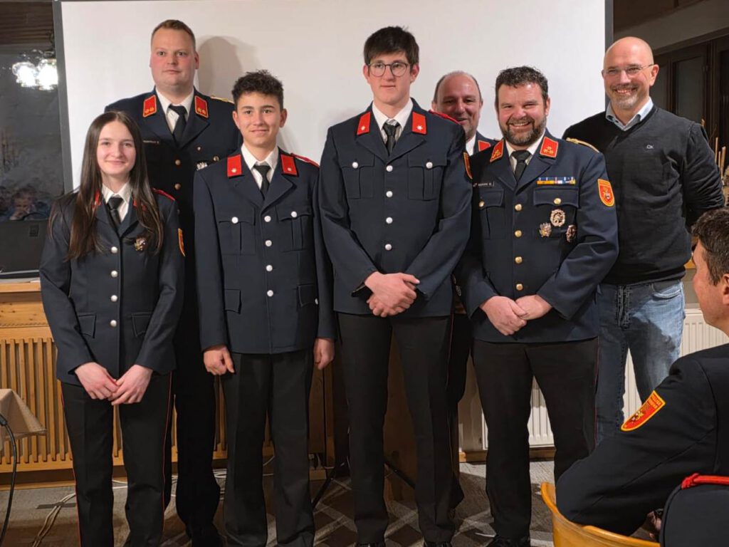 Im Rahmen der Jahreshauptversammlung wurden die Probemitglieder Matthias Guggenberger und Raphael Hecher vom Bürgermeister angelobt. Befördert zum „Feuerwehrmann“ wurden Miriam Hecher, Clemens Guggenberger und Lorenz Ebner. Zum „Oberfeuerwehrmann“ wurden Markus Hecher, Maximillian Ortner und Simon Schellander befördert.