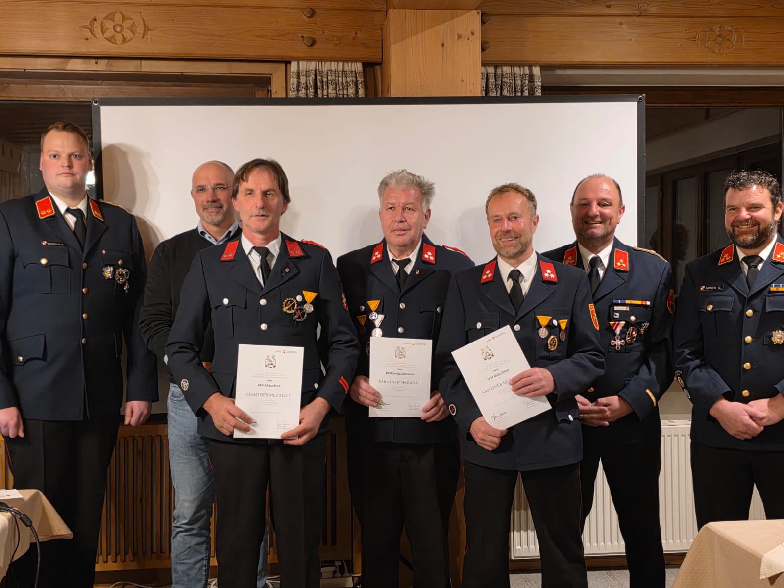 Für 40 Jahre verdienstvolle Tätigkeit auf dem Gebiet des Feuerwehrwesens wurde die Kärntner Medaille in Silber an Albert Schmid, Albert Ortner, Georg Schellander, Michael Fick, Josef Wilhelmer und Norbert Stangl verliehen. Mit der Ehrenmedaille des Kärntner Landesfeuerwehrverbandes für 50-jährige Zugehörigkeit zur Feuerwehr wurden Ehrenkommandant Ekkehard Fick und Herbert Schmid ausgezeichnet.