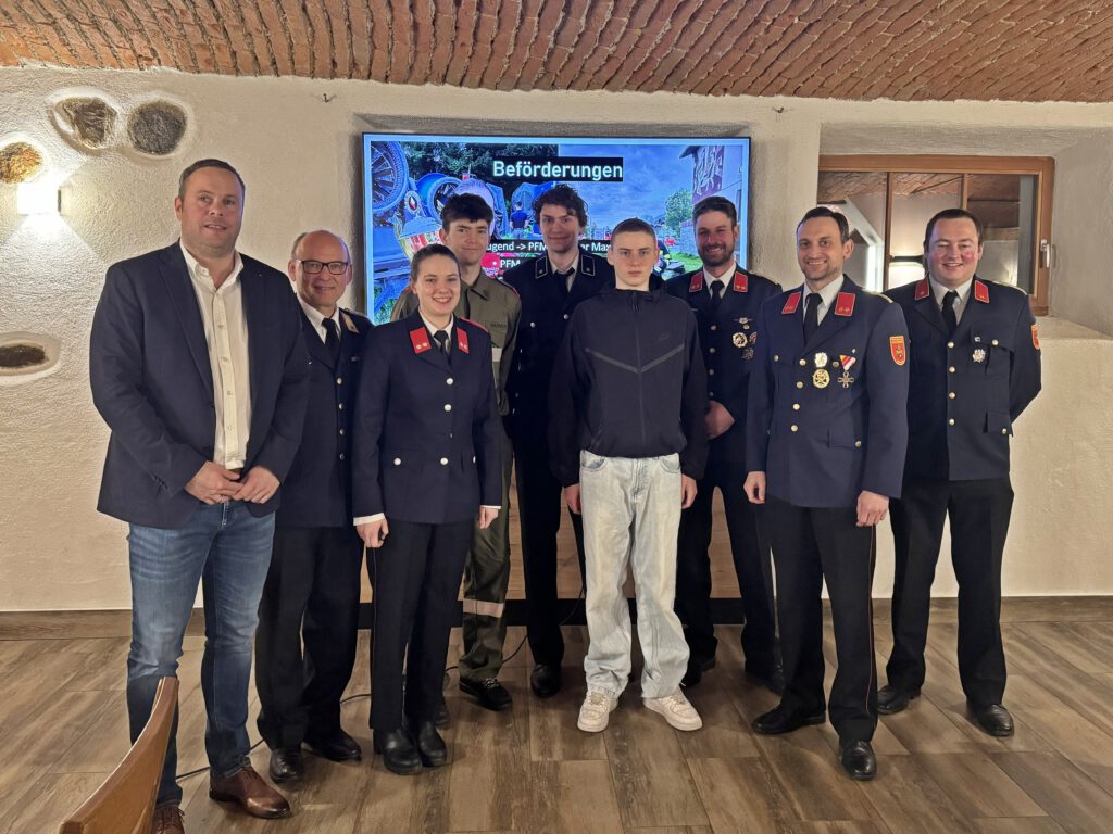Maximilian Waldner wurde vom Feuerwehrjugendmitglied zum „Probefeuerwehrmann“, Rafael Warmuth zum „Feuerwehrmann“, Magdalena Gucher zum „Verwalter“ und Mario Bidner zum „Oberfeuerwehrmann“ befördert.