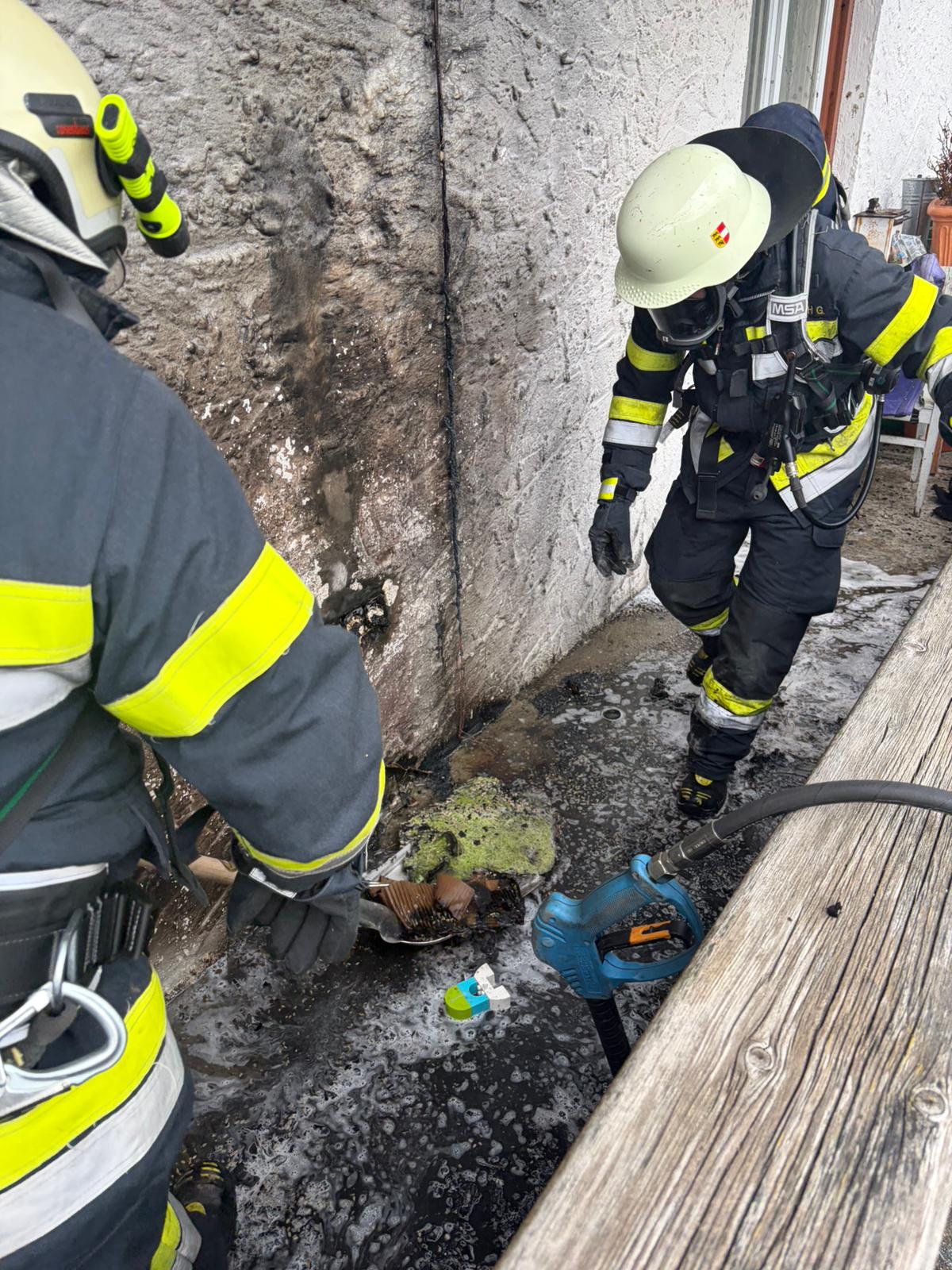 Am Balkon des Gebäudes war ein Brand ausgebrochen, bereits auf der Anfahrt war eine leichte Rauchentwicklung sichtbar. Der Brand konnte bereits vor Eintreffen der Einsatzkräfte mit einem Handfeuerlöscher eingedämmt werden. Ein Atemschutztrupp führte anschließend Nachlöscharbeiten durch und kontrollierte den betroffenen Bereich auf Glutnester. Durch das rasche und koordinierte Eingreifen konnte eine Ausbreitung auf das Wohnhaus verhindert werden.