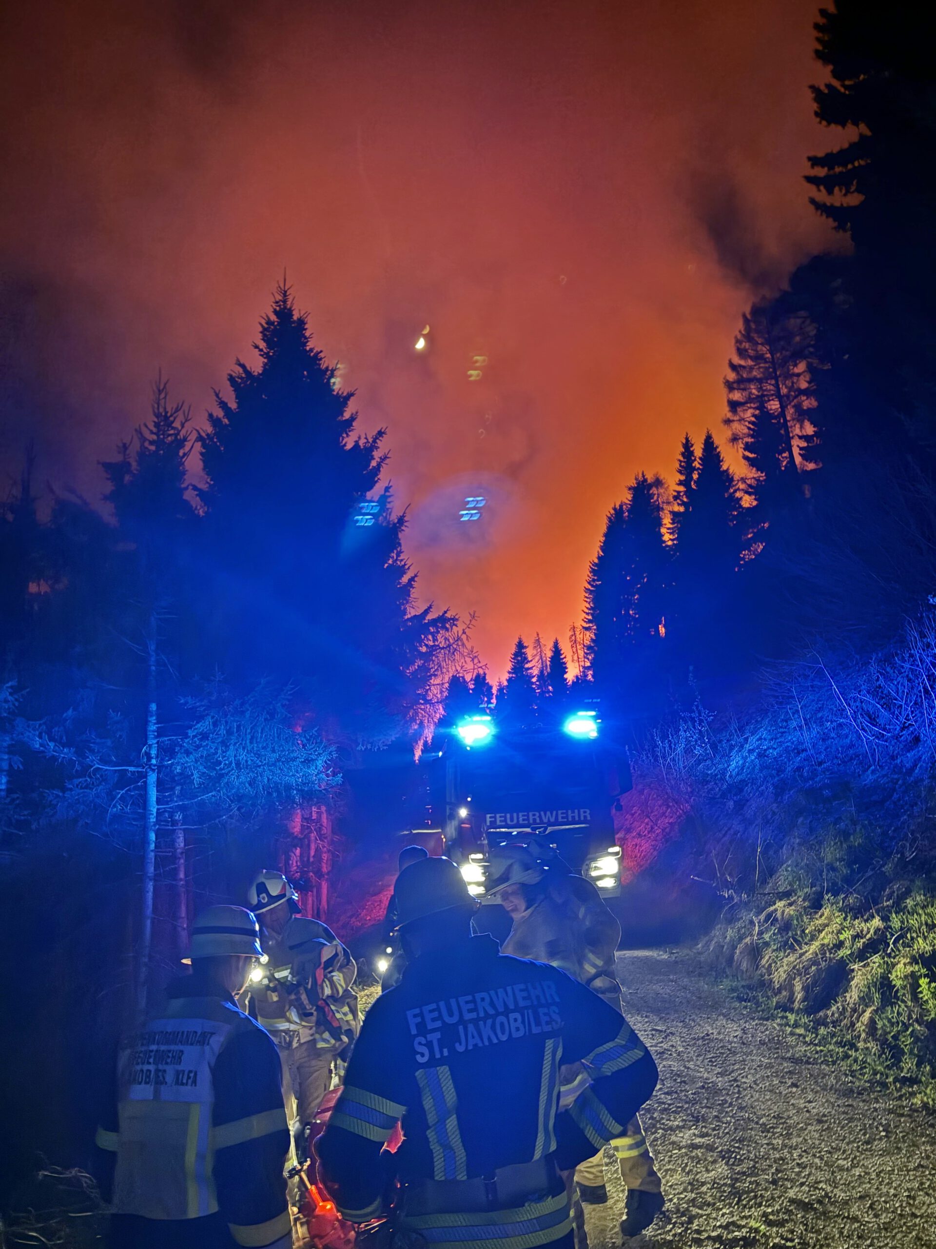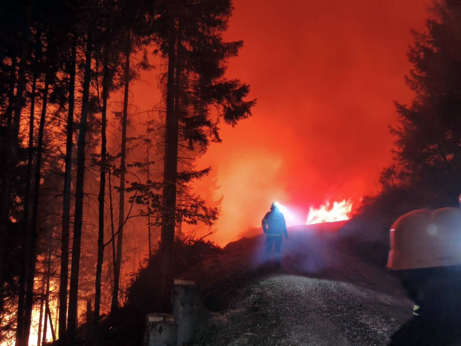Der Brand habe sich aufgrund der vorherrschenden Trockenheit bis Mitternacht auf rund acht Hektar Waldfläche ausgebreitet, berichtet Bezirksfeuerwehrkommandant-Stellvertreter Gerd Guggenberger. Die Feuerwehren versuchten, eine weitere Ausbreitung des Brandes zu verhindern. „Wegen des alpinen Geländes und der Dunkelheit ist der Einsatz für die Feuerwehrleute aber sehr gefährlich“, so Guggenberger. Herausfordernd sei auch die Löschwasserversorgung. „Mit drei Tanklöschfahrzeugen wurde ein Pendelverkehr eingerichtet. Außerdem musste eine Zubringerleitung von rund vier Kilometern Länge verlegt werden, um Löschwasser an die Brandstelle zu befördern“, erklärt Guggenberger.