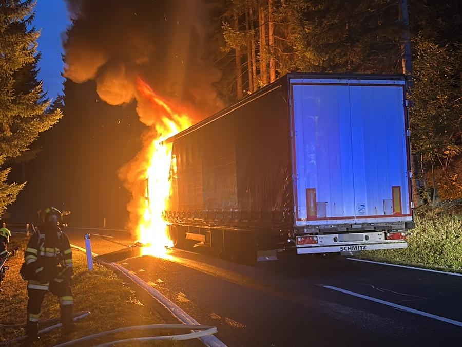 Am 7. Oktober 2025 um 18:49 Uhr kam es auf der Kreuzner Landesstraße (L33) bei Matschiedl, Gemeinde St. Stefan im Gailtal, Bezirk Hermagor, zu dem Brand eines Sattelschleppers. Der Lenker blieb unverletzt.